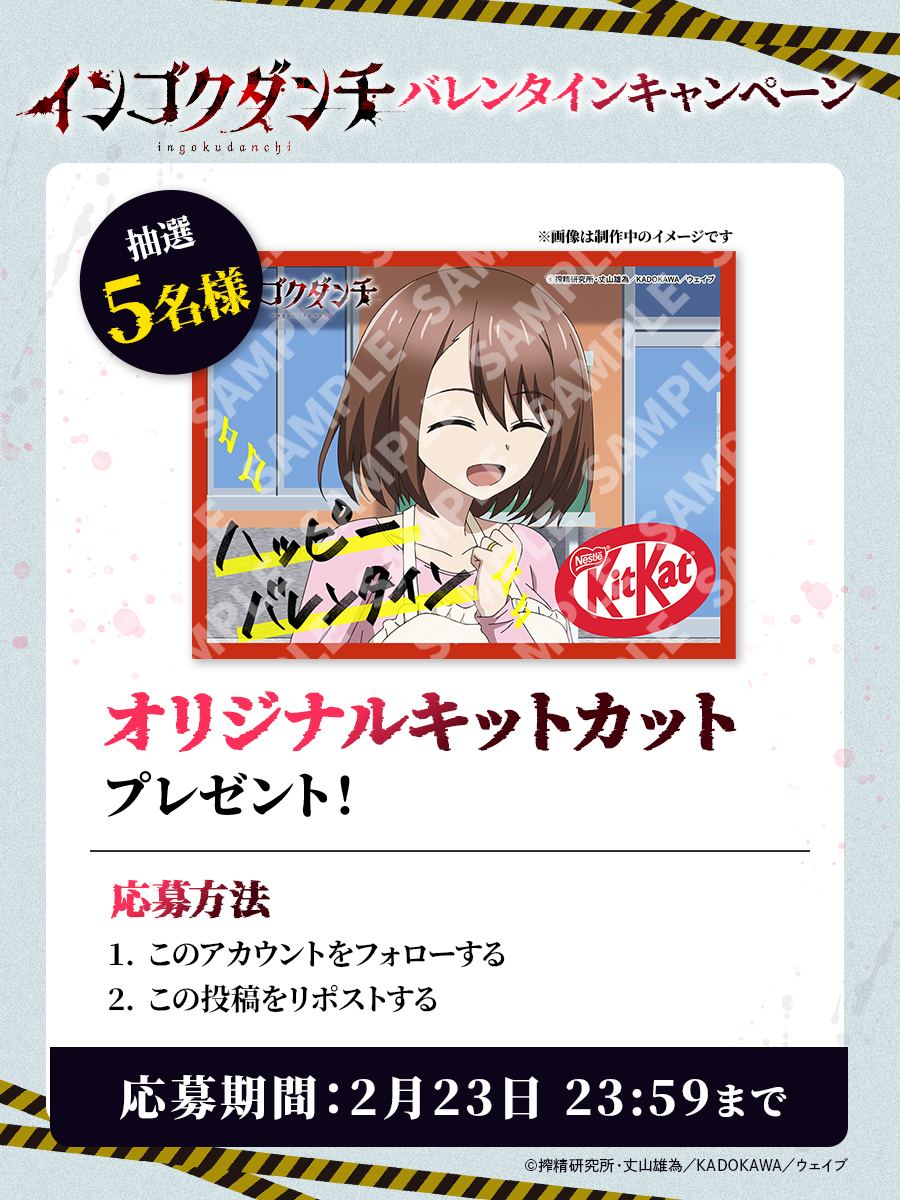『インゴクダンチ』TVアニメ公式X(@ingoku_anime)をフォロー・該当のポストをリポストしていただいた方の中から抽選で5名様に「オリジナルキットカット」をプレゼント!
